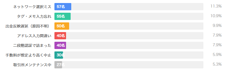 本調査では「口座開設時にどのような不安を感じたか」という質問を複数回答で実施しました。最も多い不安は「本当に安全な取引所かどうか」で(73名、14.4%)です。