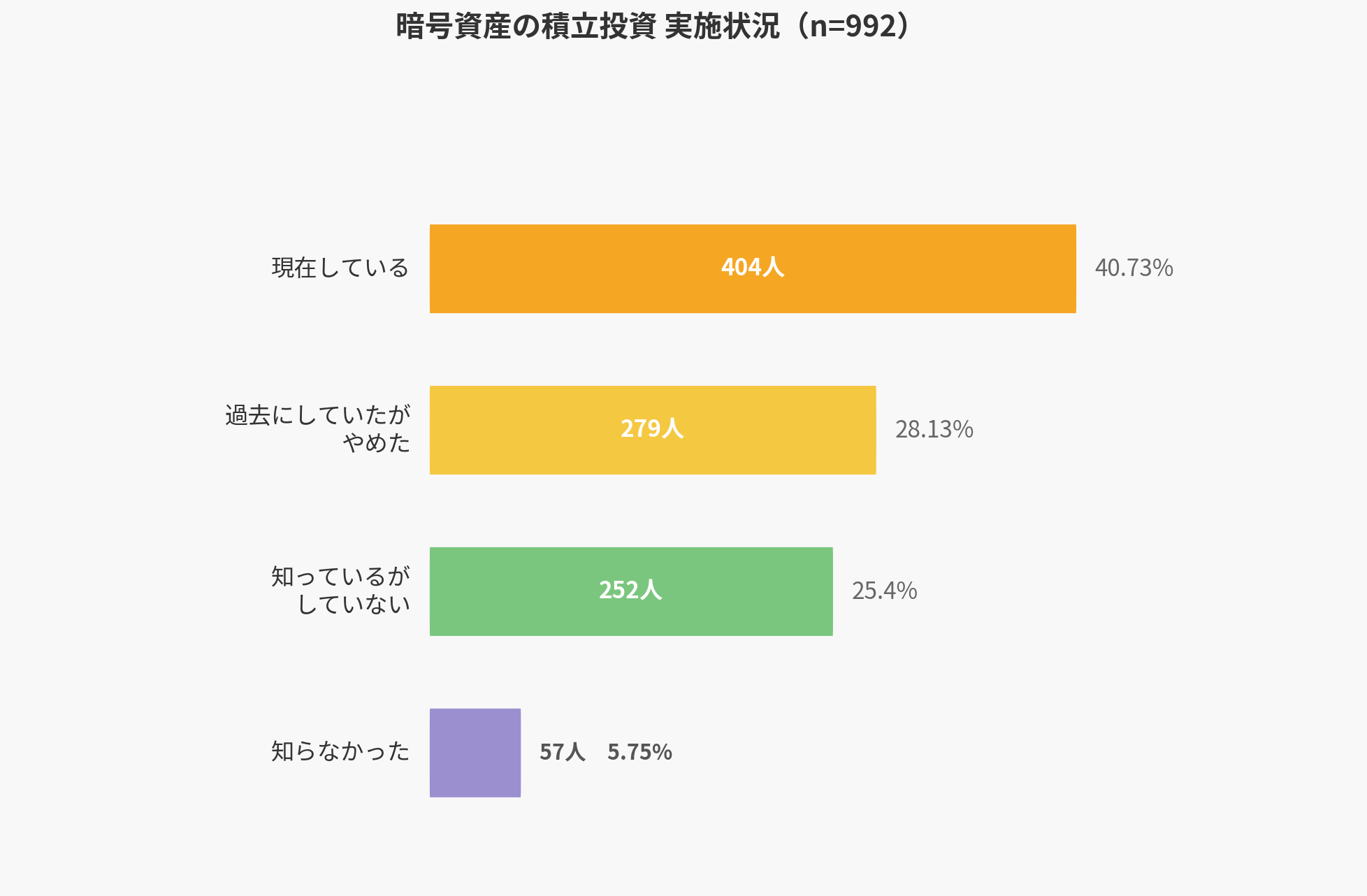 暗号資産投資家992人を対象に積立投資の状況を調査したところ、「現在している」と回答した人は40.73%に達しました。