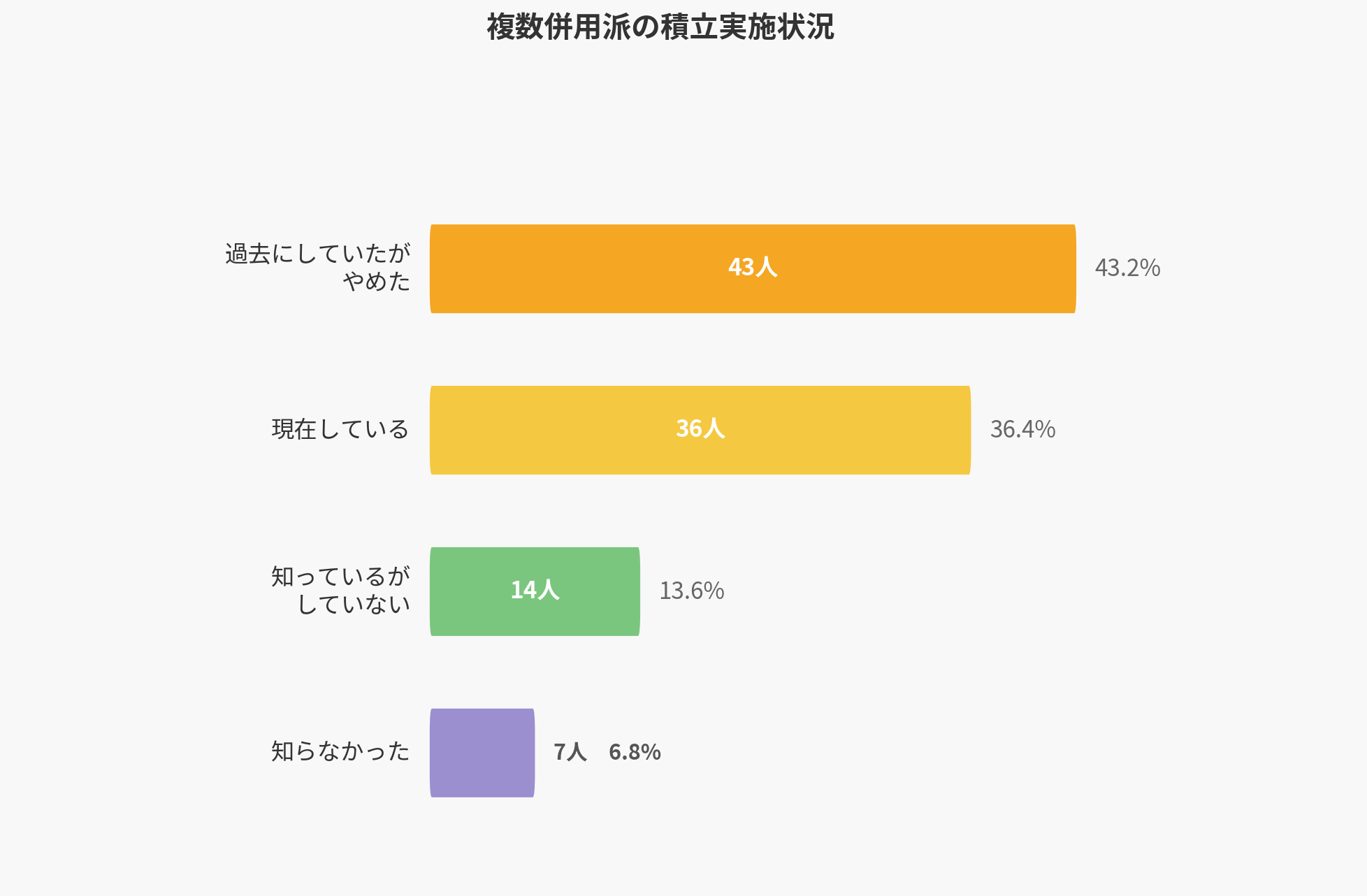 複数の投資手法を使い分ける「併用派」においては、43.2%という高い割合で積立を「過去にしていたがやめた」と回答しています。