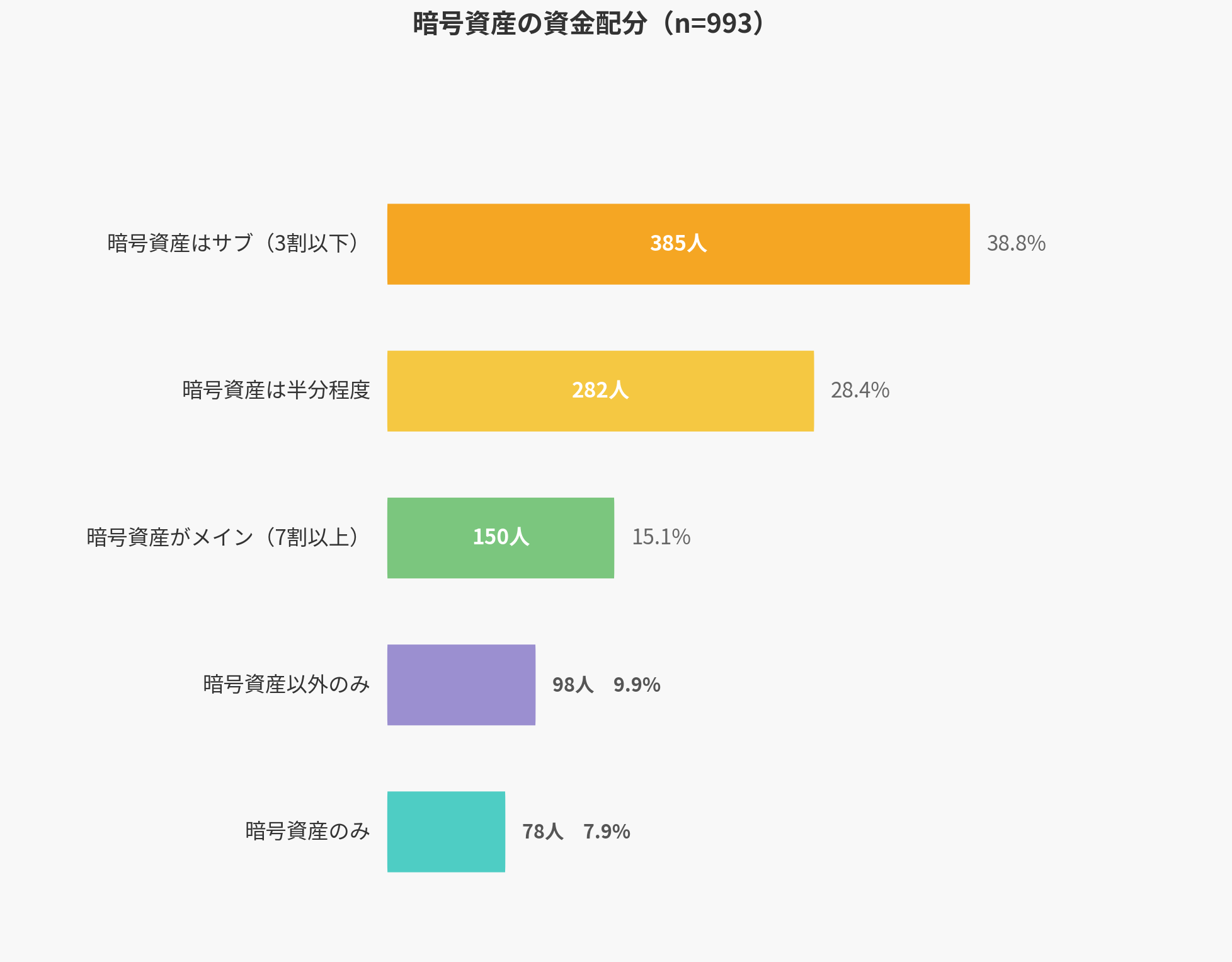 暗号資産はサブ(3割以下) | 385人 | 38.8% |