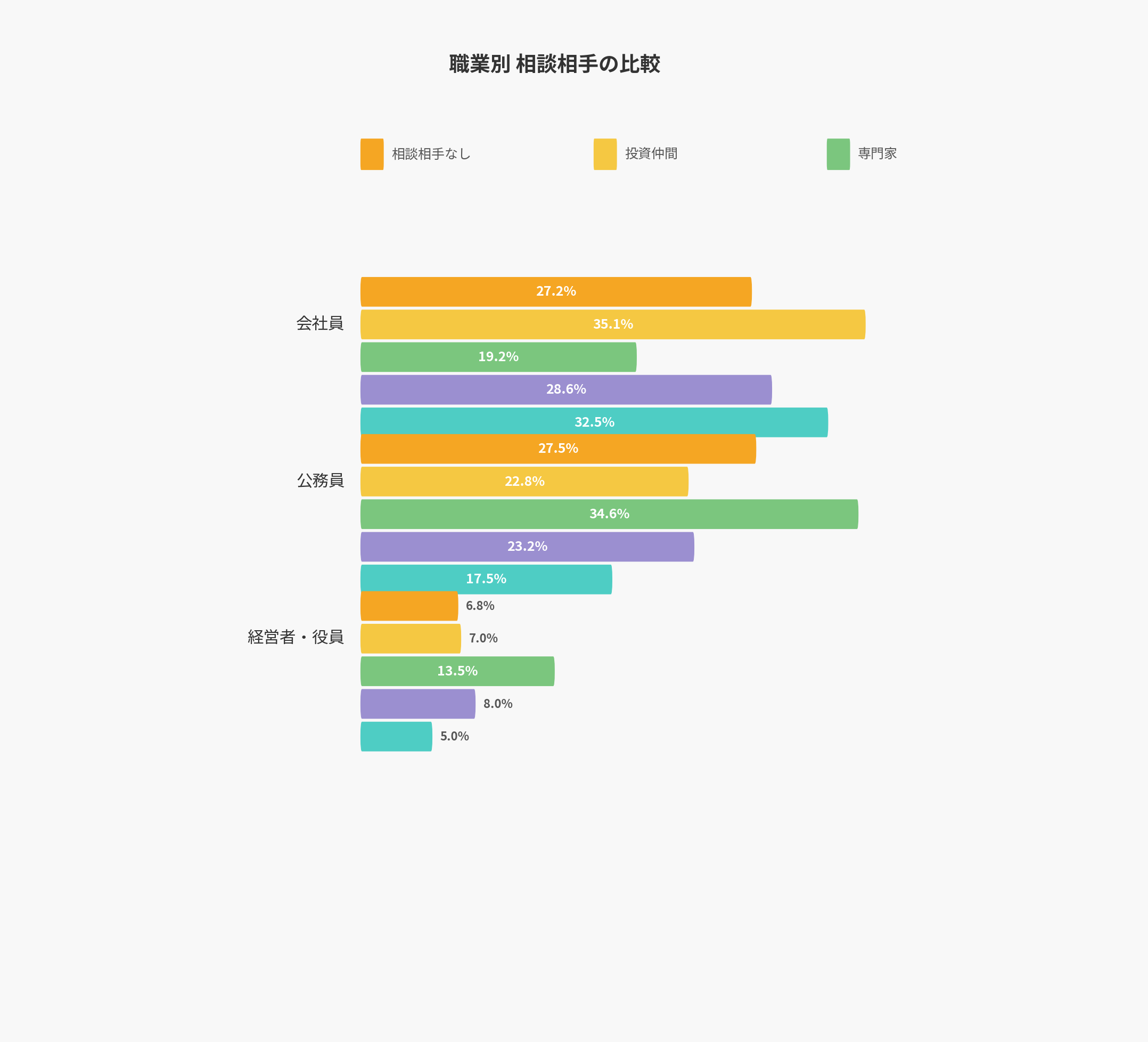 職業 | 相談相手なし | 投資仲間 | 友人・知人 | 家族 | 専門家 |