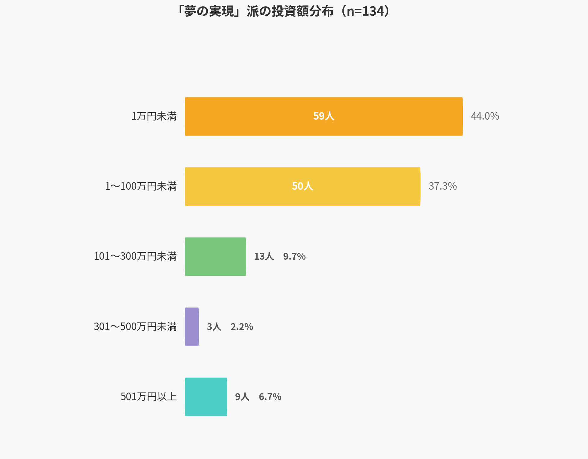 人生を変えるような一攫千金を狙う「夢の実現」派ですが、その投資額を見ると1万円未満の層が44.0%と最も多いことが分かりました。