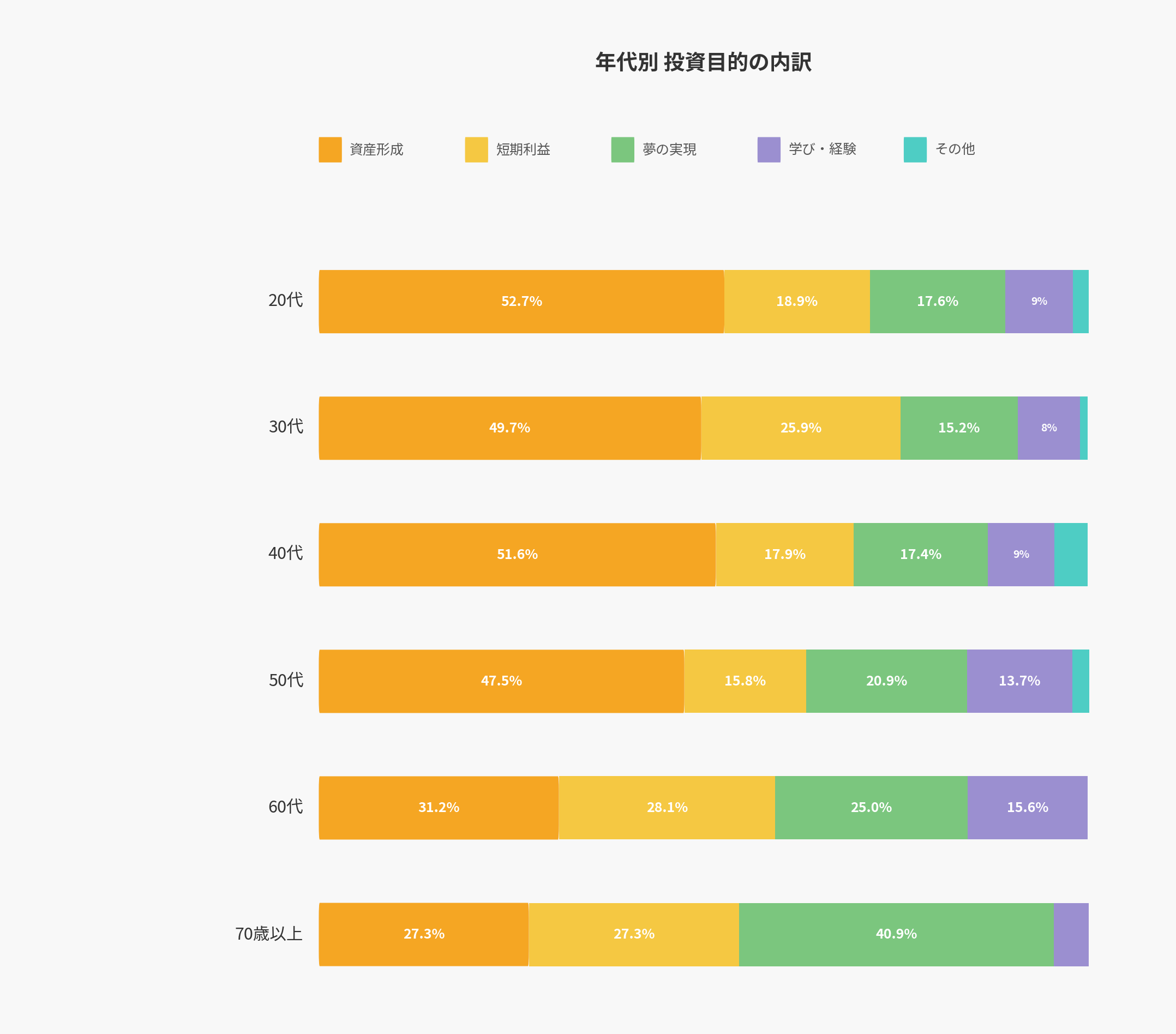 年代 | 資産形成 | 短期利益 | 夢の実現 | 学び・経験 | その他 |