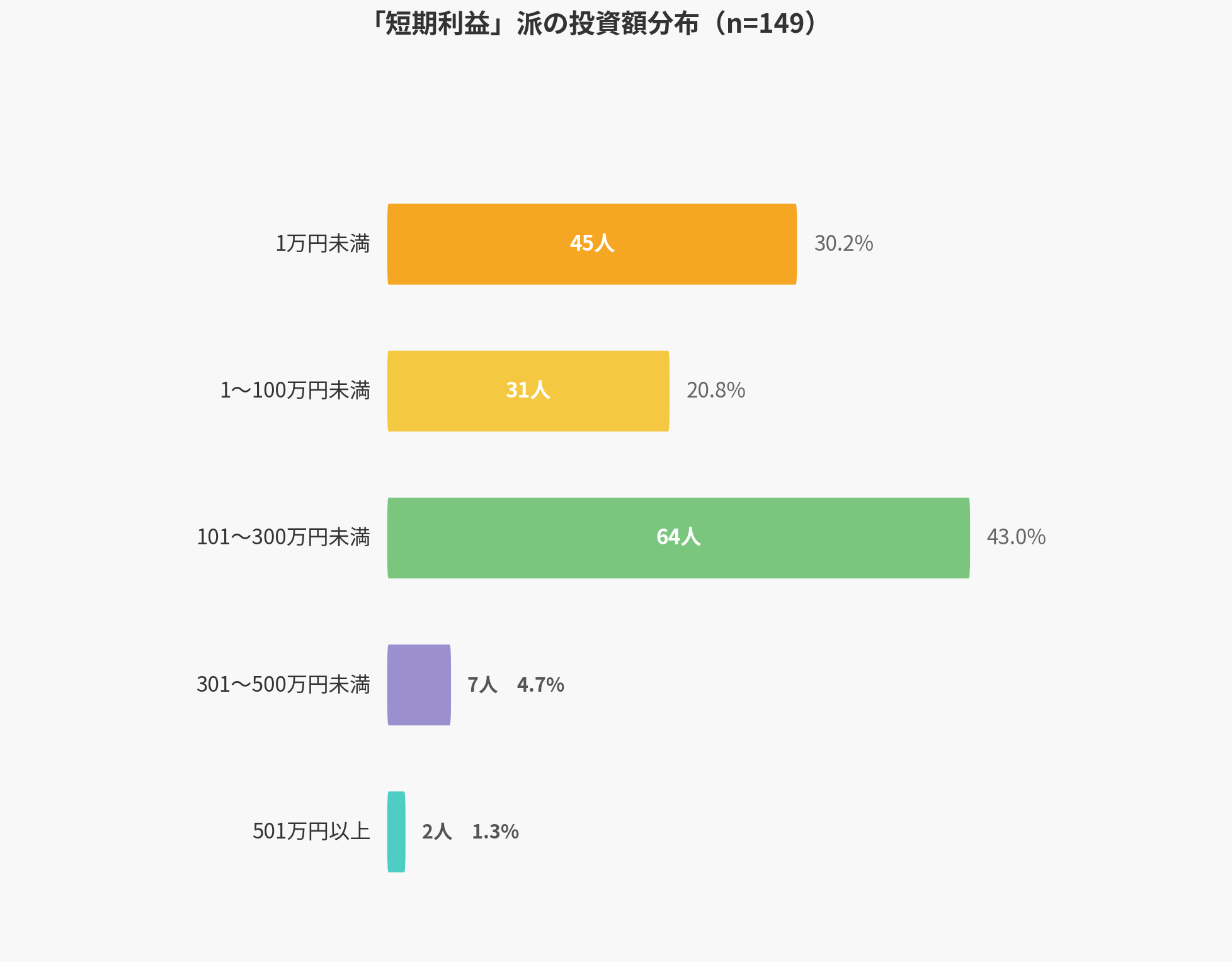 短期間での利益獲得を目指す層は、101万円から300万円未満のレンジに43.0%が集中しており、機動力を重視した配分が目立ちます。