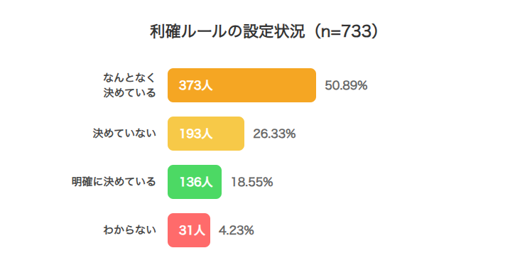 一方で「決めていない」も26.33%存在し、4人に1人以上がルールなしで利確に臨んでいます。