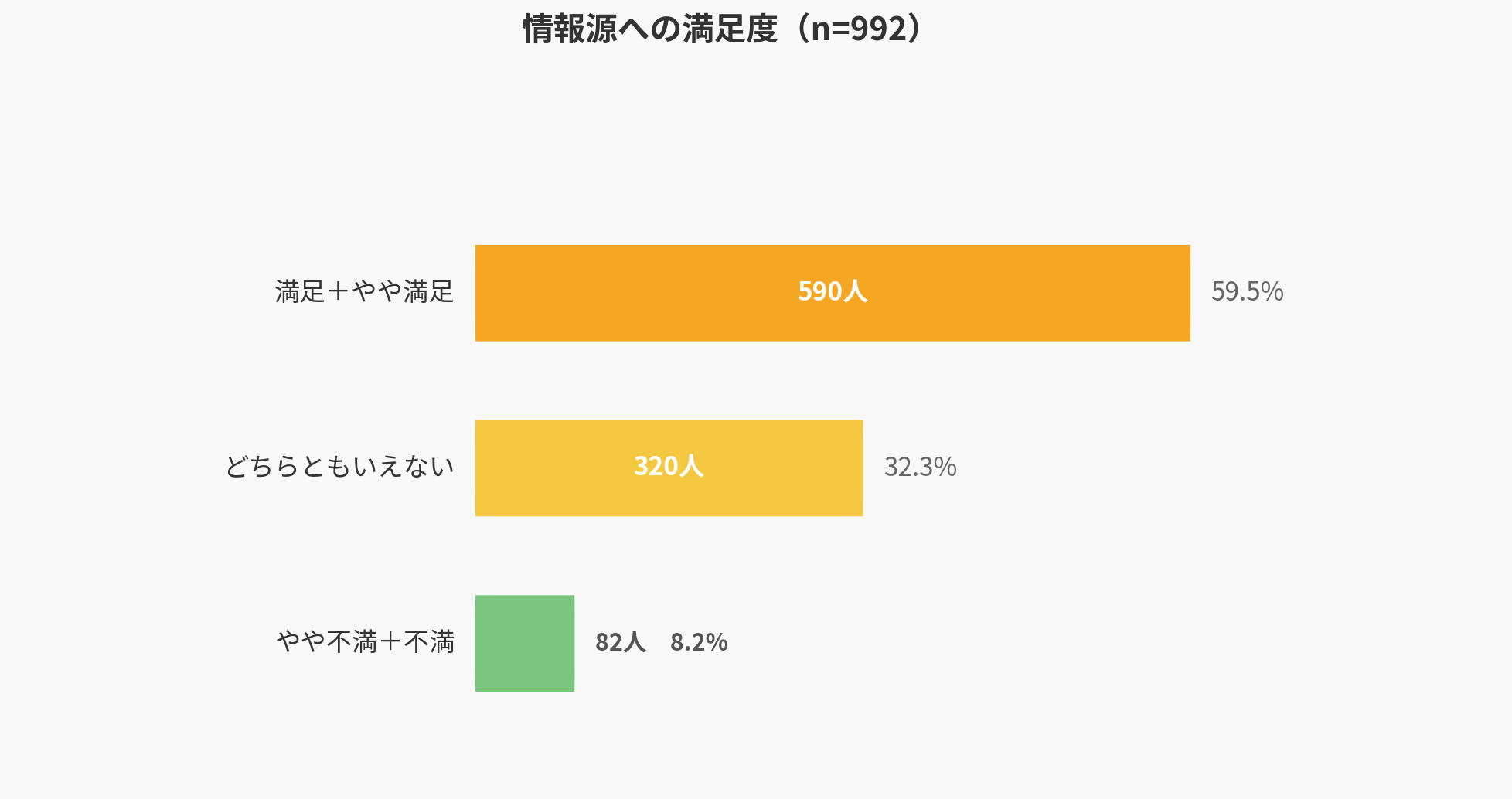 「満足+やや満足」を合わせると59.5%に達しており、大半のユーザーは現状の情報収集環境に一定の信頼を置いていることが分かります。