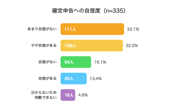 暗号資産の確定申告に対して「自信がある」「やや自信がある」と答えた層は、合わせて45.9%に留まりました。