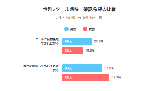 ツールで自動整理できれば安心 | 59人 | 27.3% | 23人 | 19.3% |