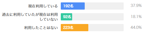 調査対象者のうち、現在暗号資産取引所を利用している層は37.9%(192名)です。